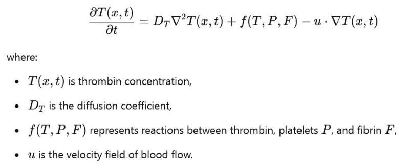 - Use partial differential equations (PDEs) to describe concentrations of clotting factors, thrombin, platelets, and fibrin over time and space.
